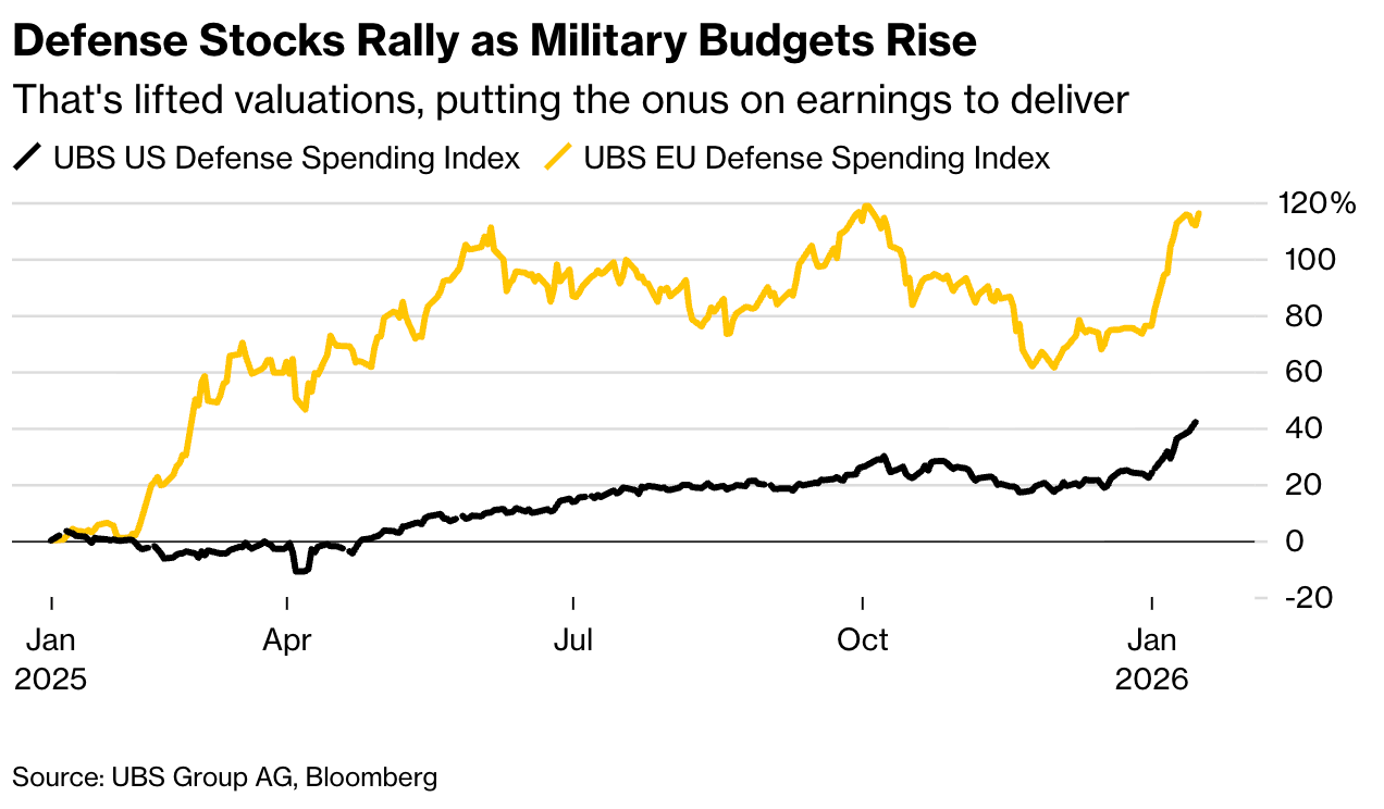 Beyond technology, the market’s focus is shifting toward geopolitical winners and the “old economy.” Geopolitical turmoil has sparked a defense sector boom, driving valuations for firms like Rheinmetall and Lockheed Martin to record highs of 29 to 32 times earnings.