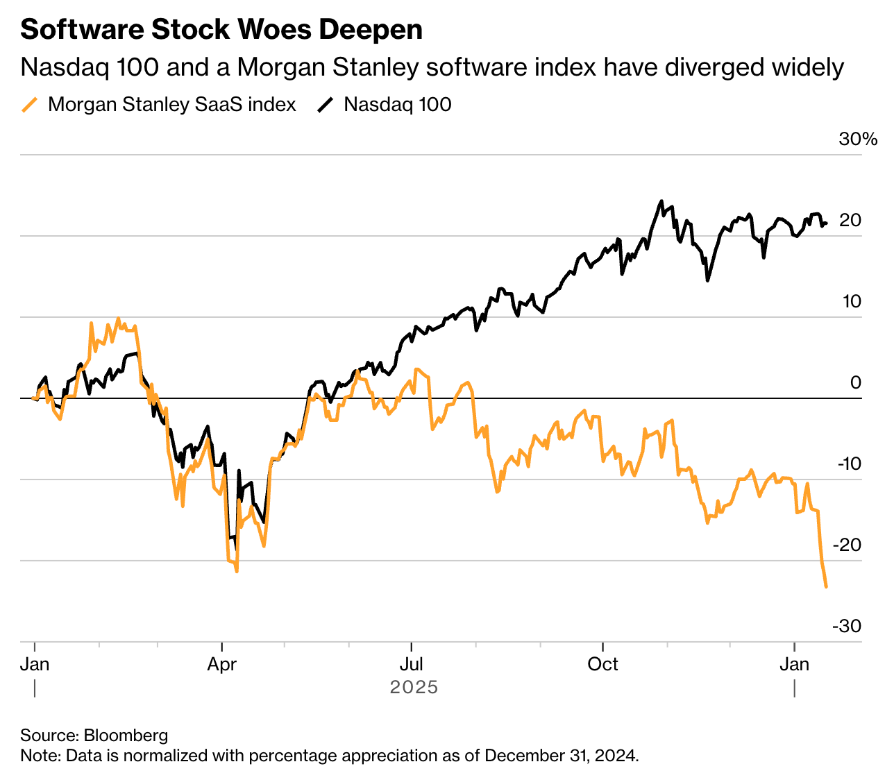 Software Stocks Stumble Amid AI Existential Crisis