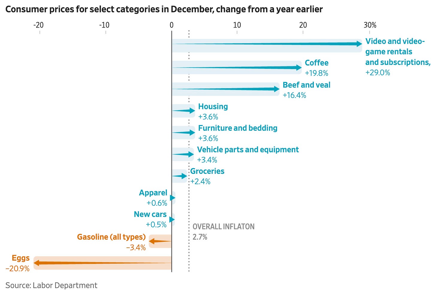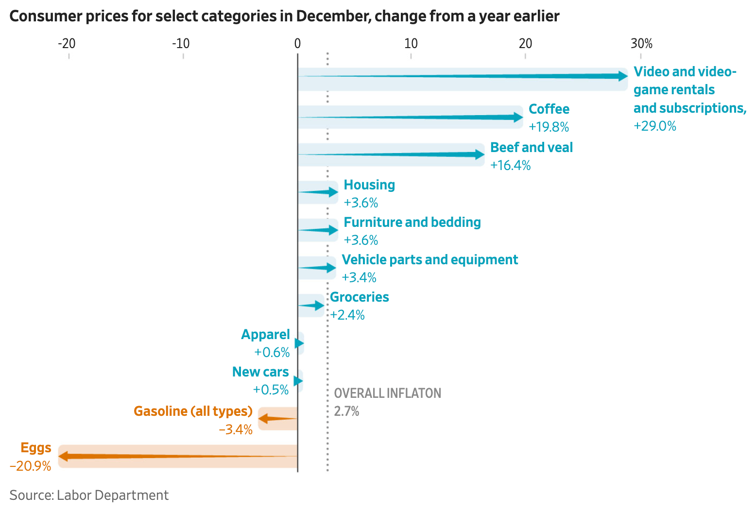 The year saw dramatic price divergences: while an easing of bird flu sent egg prices plunging 21% and gasoline costs ticked down 3.4%, other staples became significantly more expensive.
